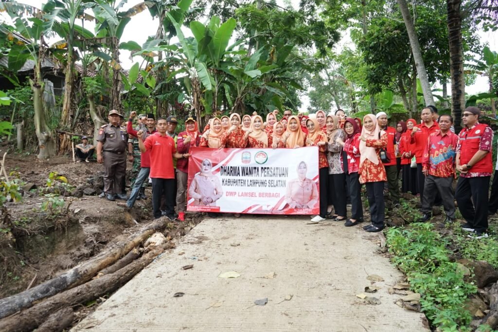 Penasehat Dharma Wanita Persatuan (DWP) Kabupaten Lampung Selatan Hj. Winarni Nanang Ermanto menyambangi dan memberikan bantuan kepada warga korban pelecehan seksual di Kecamatan Palas, Jumat (31/03/2023).